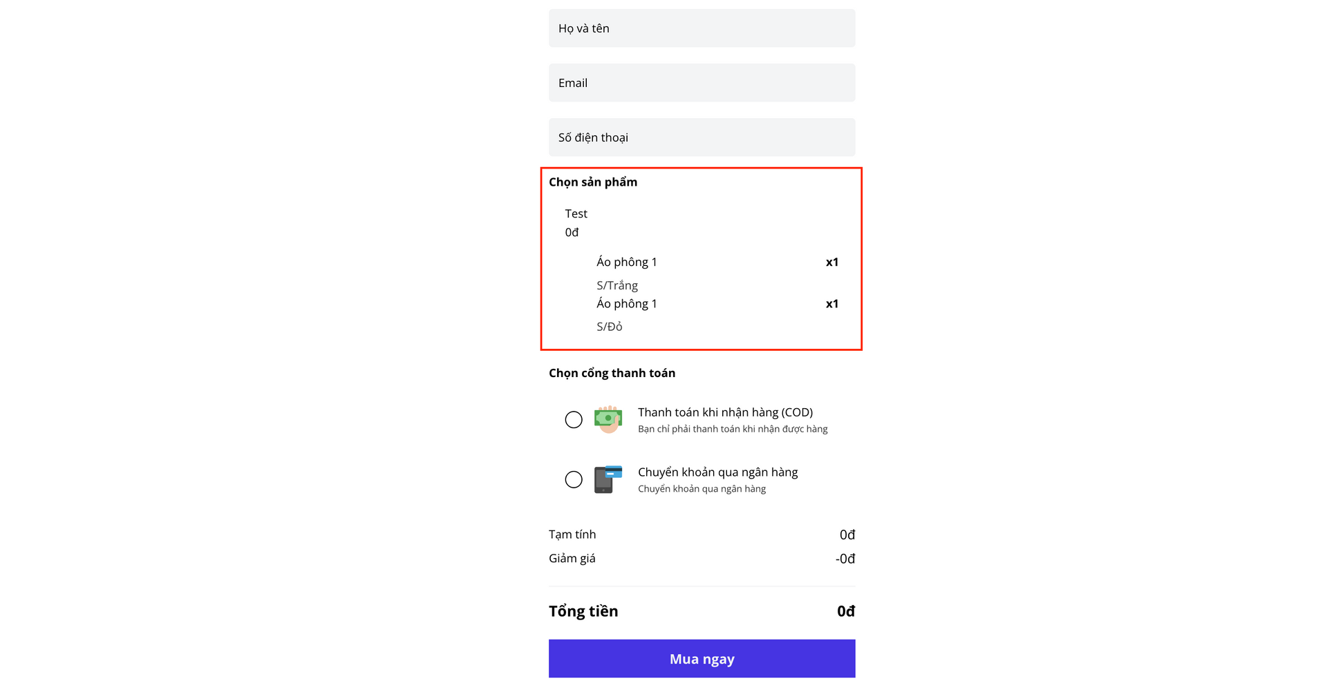 Giờ đây, Form Checkout đã tự động lưu trữ và gửi các biến này vào mục thông tin tùy chỉnh của Đơn hàng, giúp nhà bán hàng: