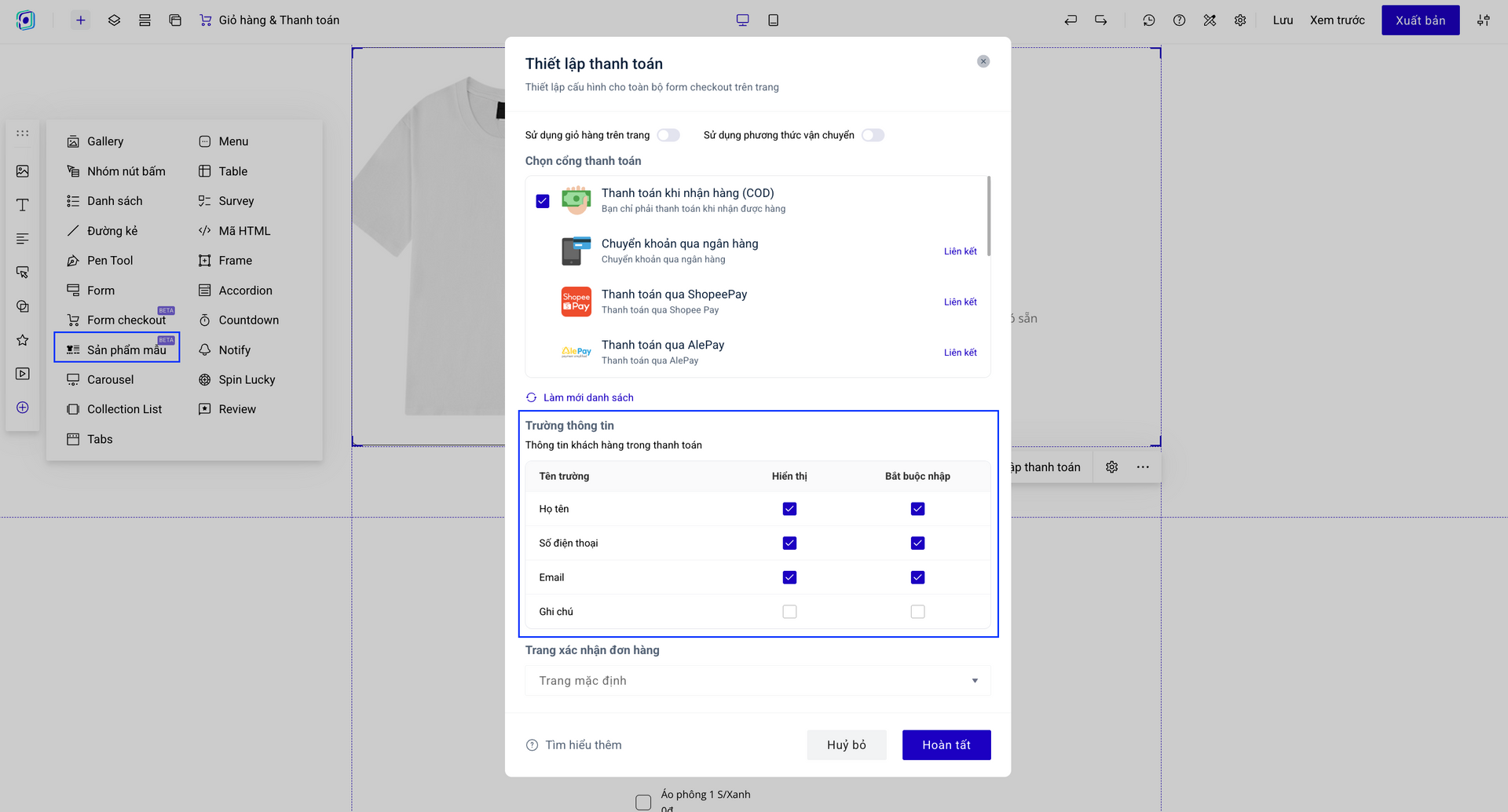 👉 Thao tác: Truy cập Builder LadiPage → Sản phẩm mẫu → Thiết lập thanh toán để bắt đầu tùy chỉnh theo nhu cầu.
